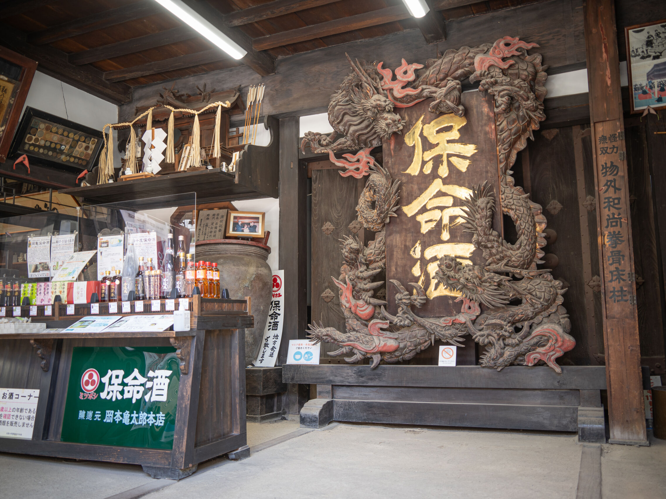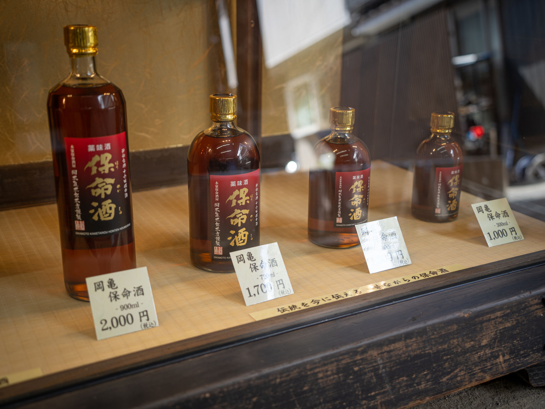 雑貨店を覗くと、鞆の浦だけで造られている薬味酒、「保命酒(ほうめいしゅ)」が目に入りました。江戸時代に大阪の医師・中村吉兵衛が、醸造業が盛んな鞆の浦の酒と合わせて造り出した「保命酒」。現在、4軒の保命酒屋さんが、その伝統を守っていらっしゃいます。老舗の「岡本亀太郎本店」にお邪魔することにしました。
