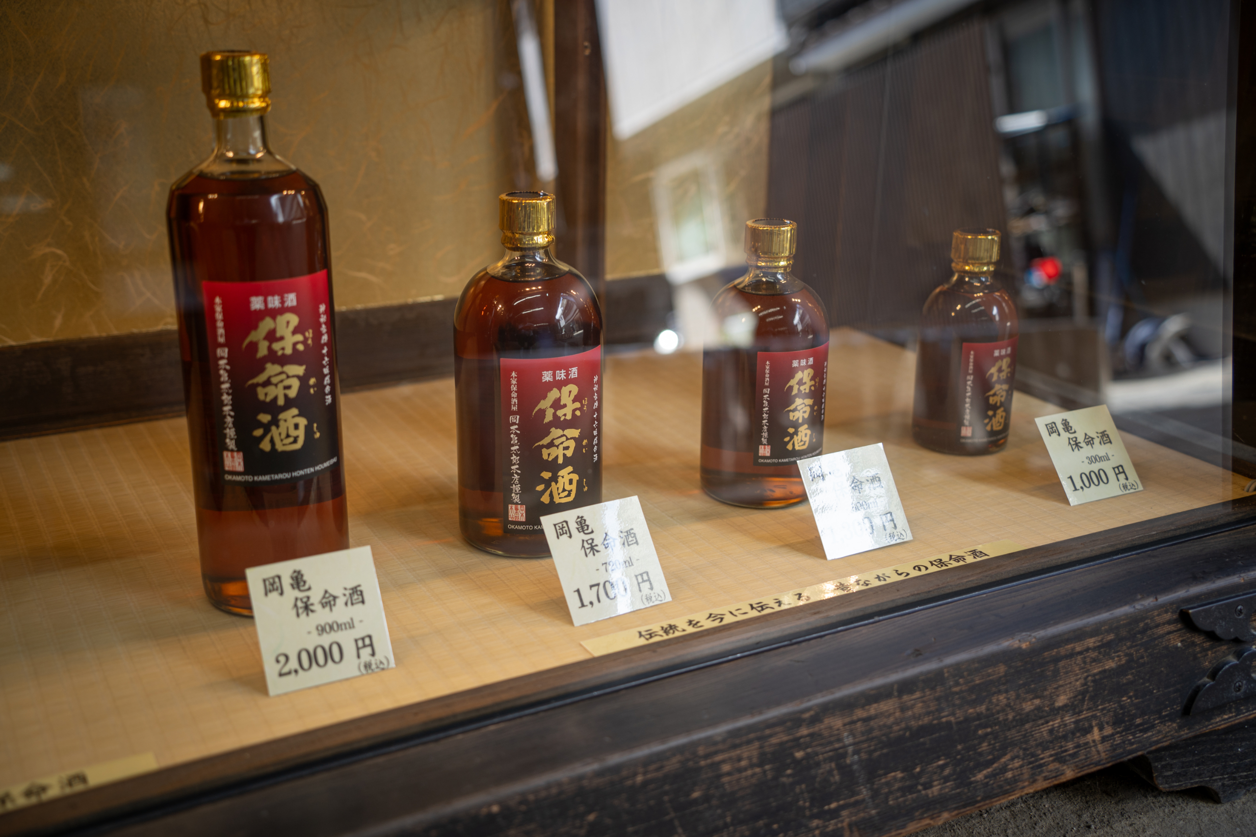 雑貨店を覗くと、鞆の浦だけで造られている薬味酒、「保命酒(ほうめいしゅ)」が目に入りました。江戸時代に大阪の医師・中村吉兵衛が、醸造業が盛んな鞆の浦の酒と合わせて造り出した「保命酒」。現在、4軒の保命酒屋さんが、その伝統を守っていらっしゃいます。老舗の「岡本亀太郎本店」にお邪魔することにしました。