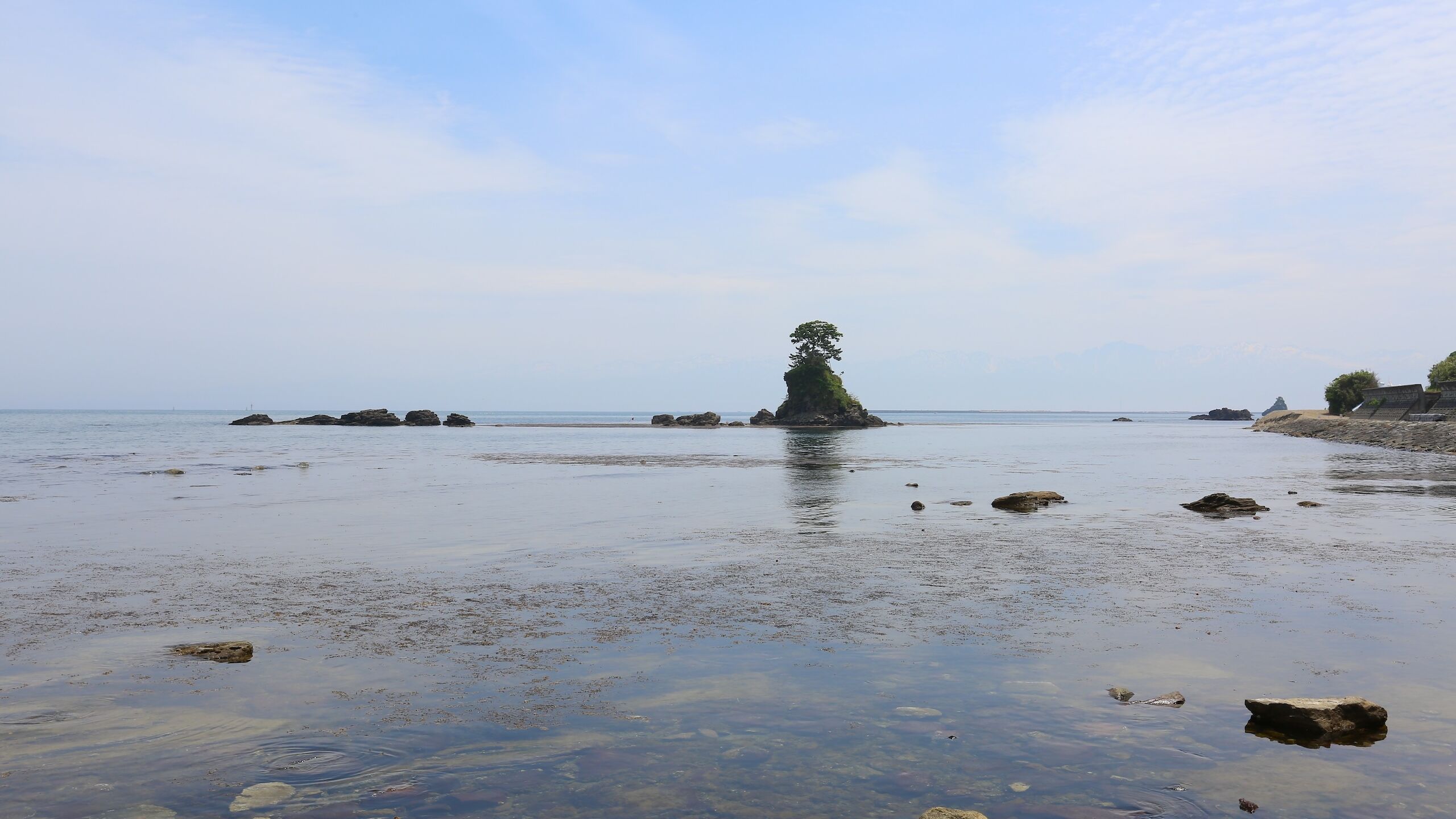 ここは富山県高岡市の雨晴(あまはらし)海岸。スッキリと晴れた日には富山湾越しに女岩と3000メートル級の立山連峰が望めます。この日は立山連峰を見ることができませんでしたが、それでも毛嵐が立ち、息を呑むような光景を見せてくれました。