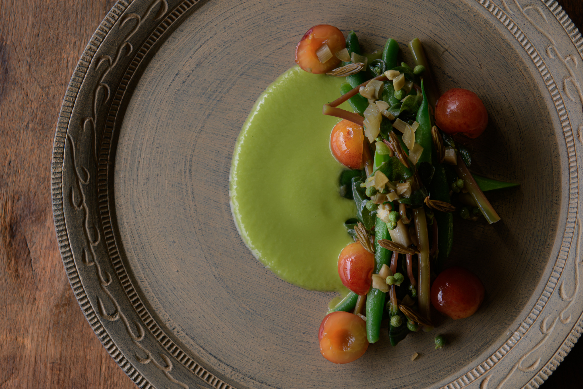 「自分の料理とは」「青森らしさとは何だろう」・・・模索を続けた藤田シェフの足は、岩木山と、その裾野に広がる津軽の自然に向かっていきました。勢いのある、瑞々しい野菜や山菜が藤田さんの料理を彩ります。