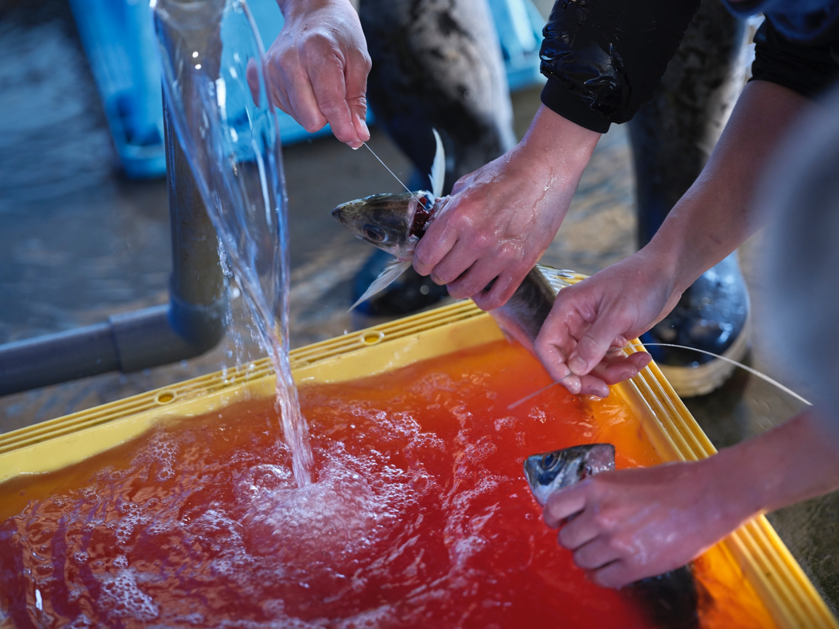 まず、魚にストレスを与えない捕り方をすること。生きたまま港まで運ぶこと。