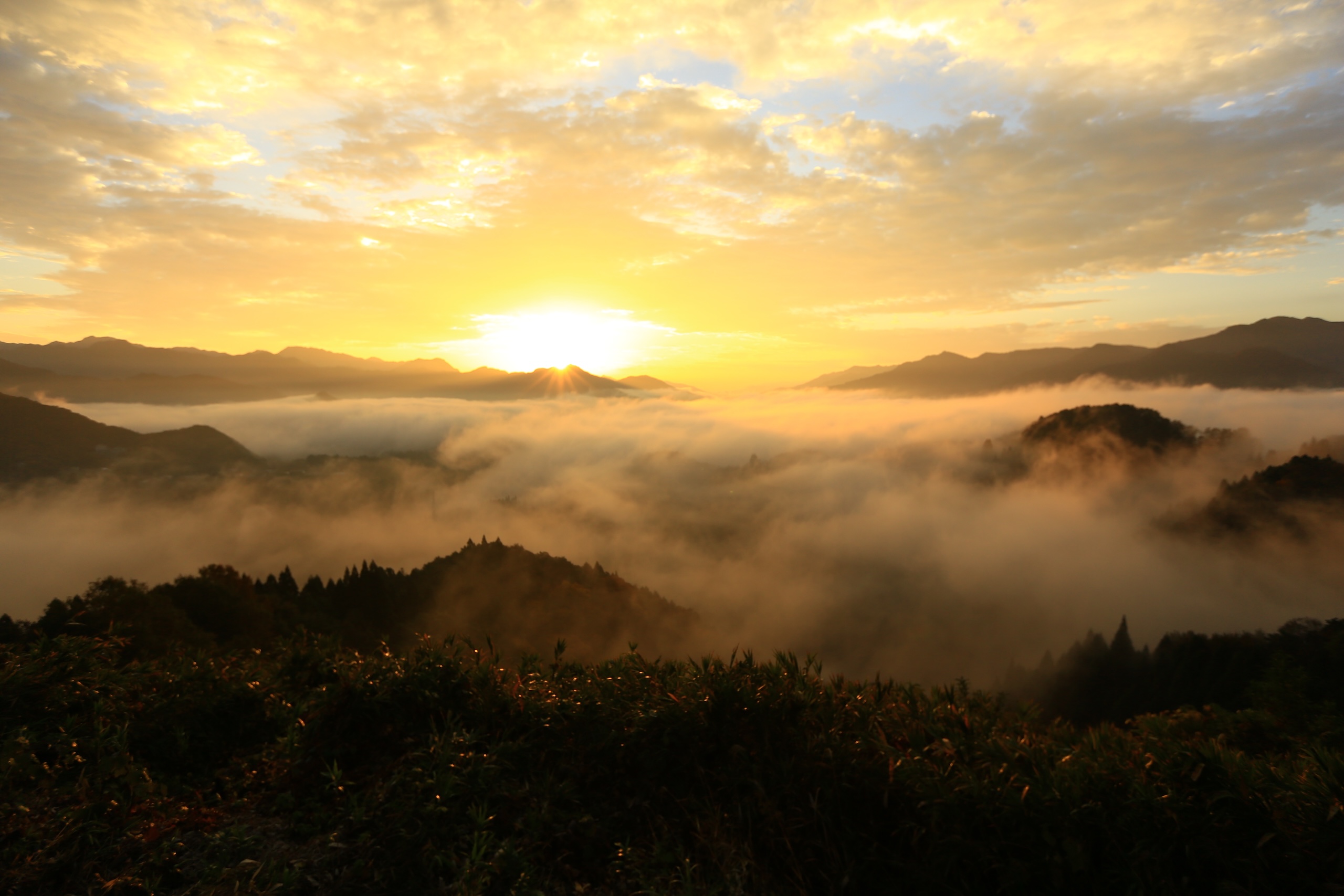 高千穂峡は、柱状節理の断崖が連なり、迫力ある風景が広がる渓谷です。五ヶ瀬川の清流が流れる中に佇む「真名井の滝」は、17メートルの高さから流れ落ち、その美しい姿が訪れる人々を魅了します。この地域は神話の聖地と言われ、近くには約1900年の歴史を持つ高千穂神社や、天岩戸伝説にゆかりの天岩戸神社などもあります。さらに、神武天皇の孫・建磐龍命(たていわたつのみこと)が九州統治の際に立ち寄って、国見をされたという伝説の丘、国見ヶ丘からは雲海と山々の絶景を楽しむことができ、自然と神話が調和する特別な魅力を堪能できる場所です。